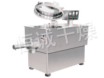 粉体物料与粘合剂在圆筒形容器中由底部混合浆充分混合成湿润软材,然后由侧置的高速粉碎桨切割成均匀的湿颗粒。